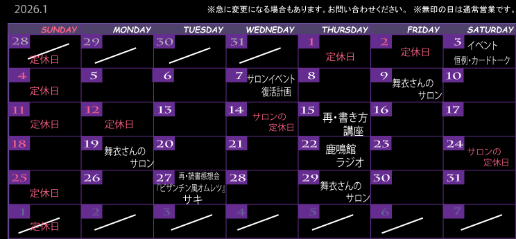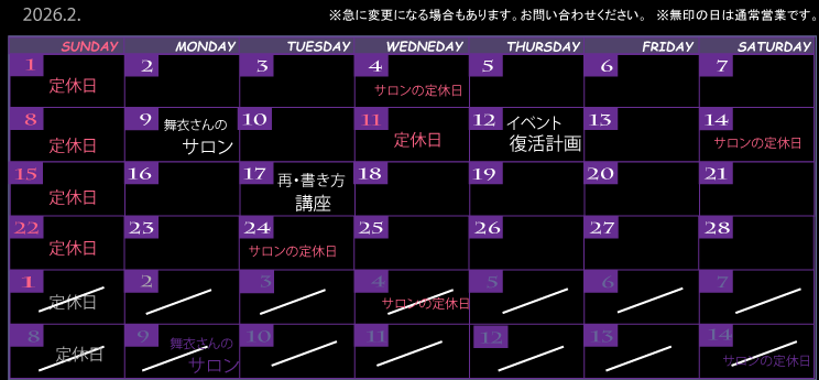 ※ 定期イベントのご案内 9のつく日は「舞衣DAY」 サロン通常営業内ですので、システムは通常。